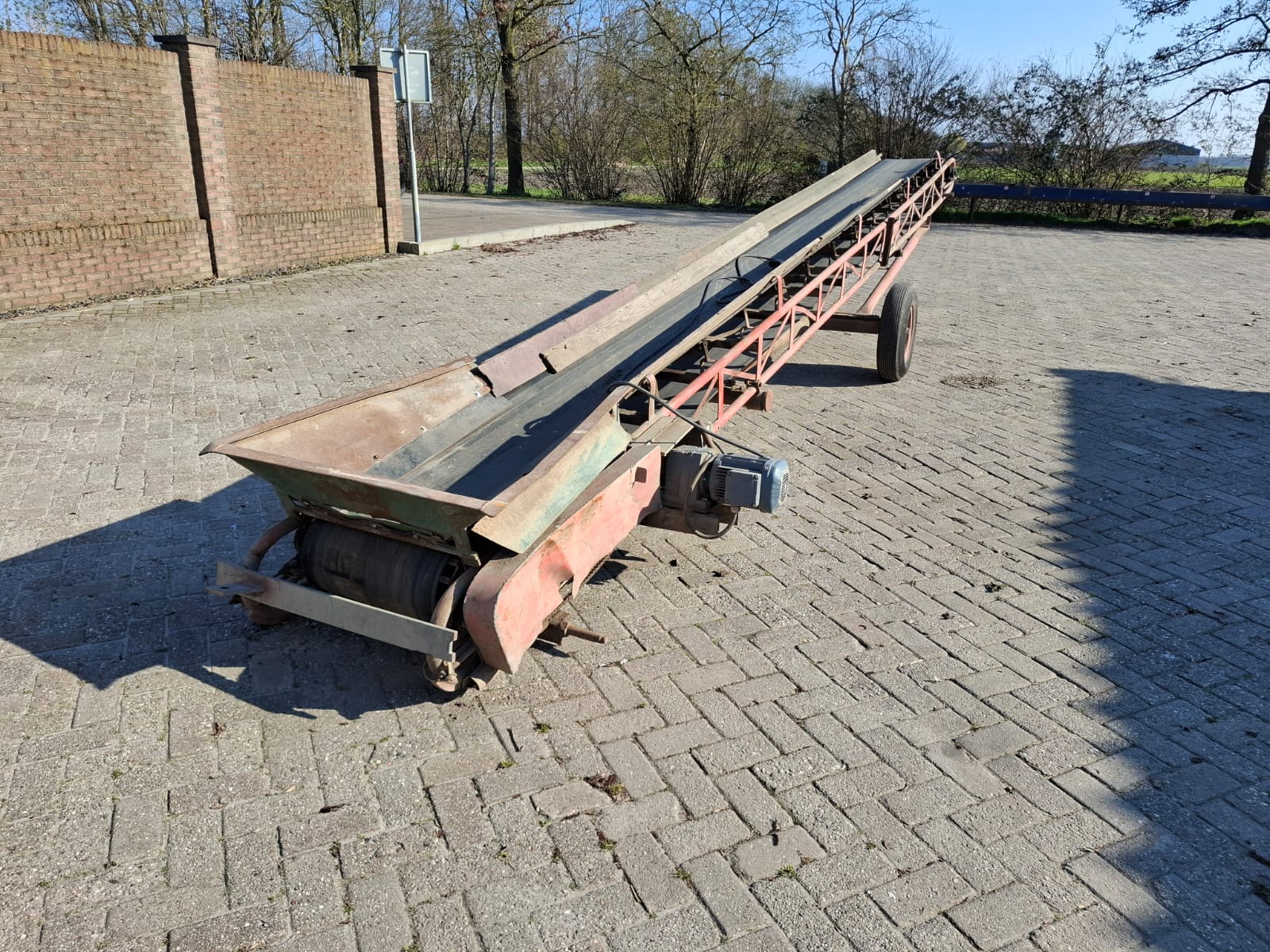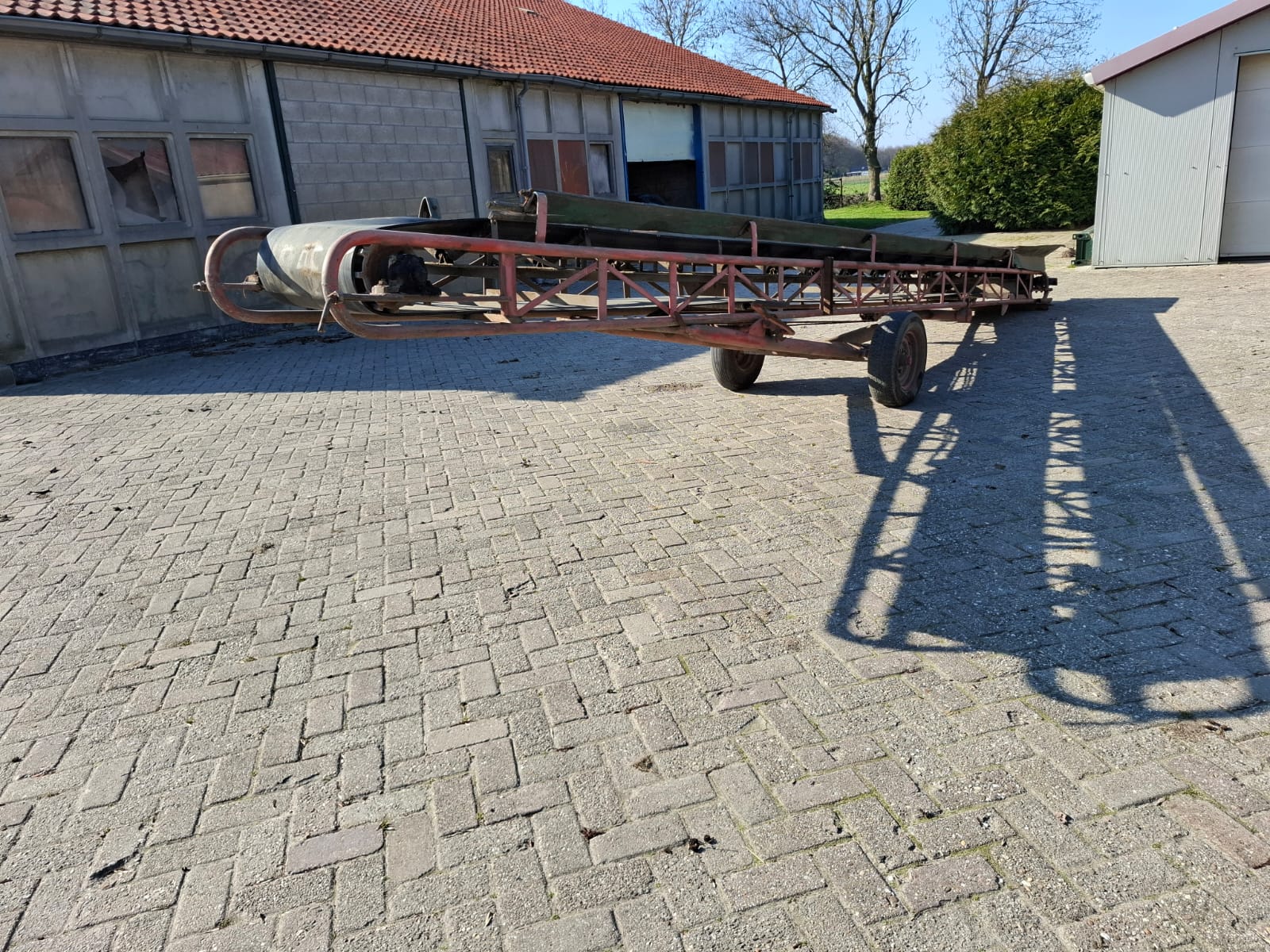Przenośnik (taśmociąg) 8 m, szerokość taśmy 50 cm, jedna prędkość taśmy, taśma gładka bez zabieraków.